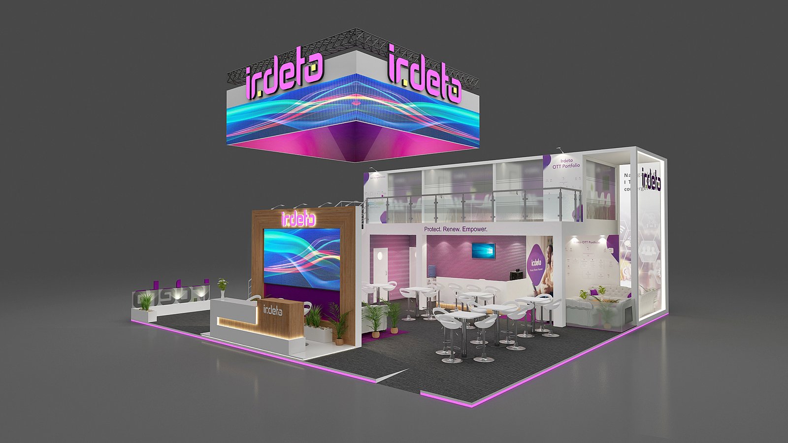 We give you the best double decker designs, inhouse-production for top-quality stands, and dedicated support from design to dismantling. By choosing us as your double decker exhibition stand builder, you can focus on what matters most, while we handle the rest for you!